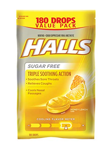 Halls Sugar Free Cough Suppressant, Honey-Lemon, 180-Drop Bag