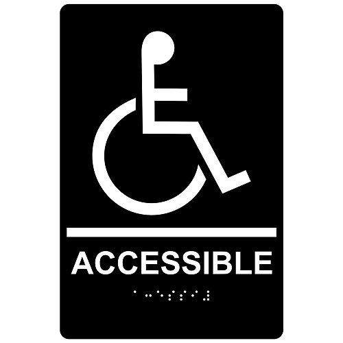 Accessible Sign, ADA-Compliant Braille and Raised Letters, 9x6 in. White on Black Acrylic with Adhesive Mounting Strips by ComplianceSigns