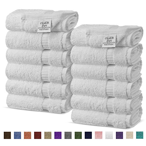 Chakir Turkish Linens Turkish Cotton Luxury Hotel & Spa Bath Towel, Wash Cloth - Set of 12, White