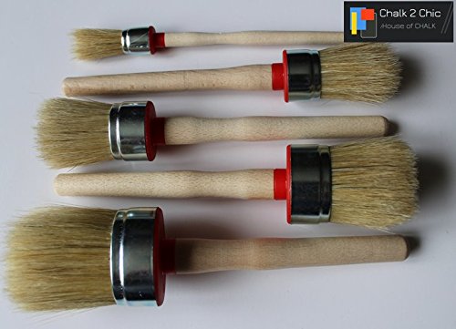 #PR5 - 5 x CHALK PAINT AND WAX natural bristle ROUND BRUSHES 5 sizes. 55mm , 50mm , 40mm , 35mm , 20mm