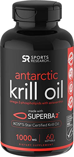 Antarctic Krill Oil (Double Strength) with Omega-3s EPA, DHA and Astaxanthin (60 Softgels - 1000mg)