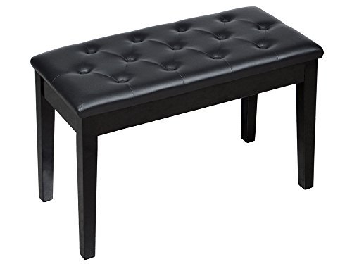 TMS Black Ebony Wood Leather Piano Bench Padded Double Duet Keyboard Seat Storage