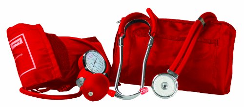 Primacare DS-9181-RD Professional Blood Pressure Kit, Includes an Aneroid Sphygmomanometer and Sprague Rappaport Stethoscope, Red