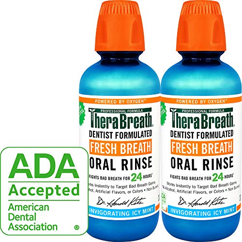 TheraBreath Fresh Breath Oral Rinse, Icy Mint, 16 Ounce Bottle (Pack of 2)
