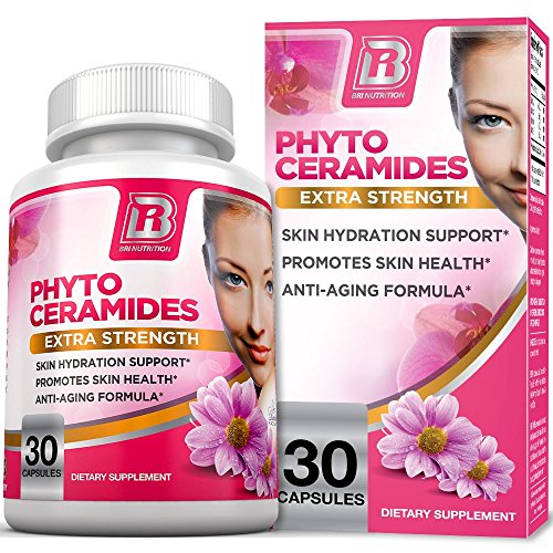 BRI Nutrition Phytoceramides - Natural Anti-Aging Skin & Hair Vitamins for Collagen Boost & Rejuvenation w Vitamins A + C + D + E - 350mg per Serving (1 Vegetable Capsule)