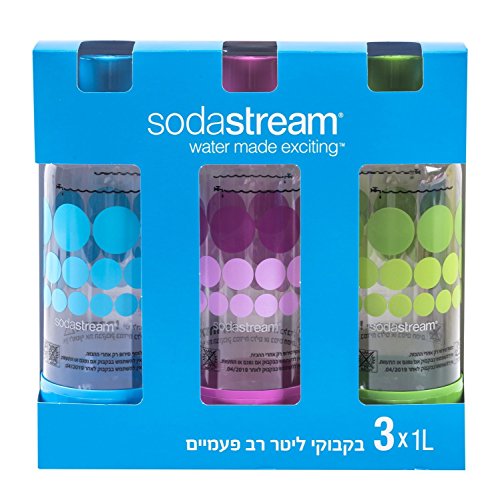 Original Sodastream Three Pack 1 Liter Carbonating Bottles - Lasts 2 years - Purple, Blue, and Green