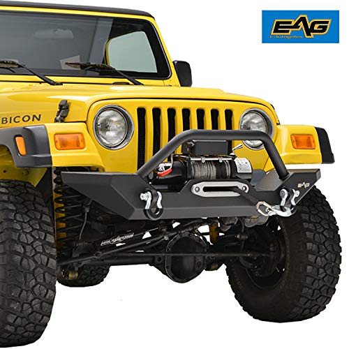 EAG Steel Front Bumper with Winch Plate Black Textured Fit for 87-06 Jeep Wrangler TJ YJ