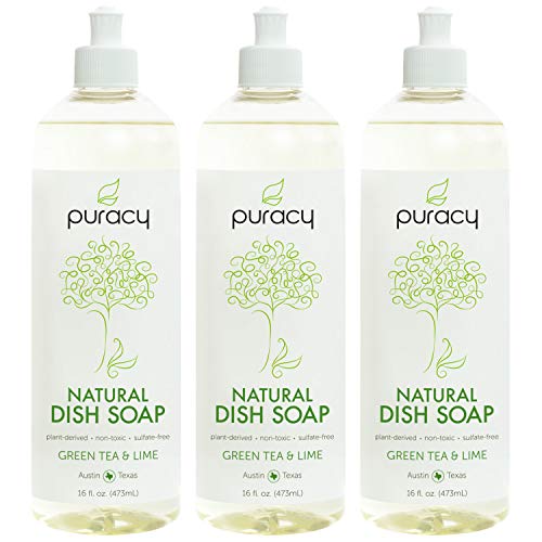 Puracy Natural Dish Soap, Green Tea & Lime, Sulfate-Free Liquid Detergent, 16 Ounce (3-Pack)