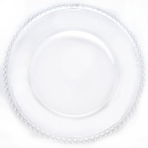 8 pc 13" GLASS CHARGER PLATES with Clear Beaded Rim