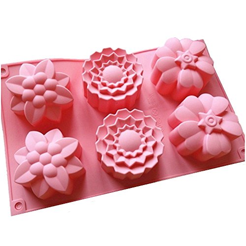 Allforhome 6 Flowers Silicone Bakeware Muffin Cups Handmade Soap Molds Cupcake Mold Cake Baking Pans Polymer Resin Clay Jelly Soap DIY Molds Soap Making Mould Handmade Soap Mold Moon Cake Mold