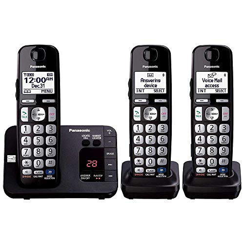Panasonic KX-TGE233B DECT 6.0 Plus Technology (1.9GHz) Wall Mountable Range Extender Compatible Expandable Cordless Digital Phone with Large Keypad - 3 Handsets