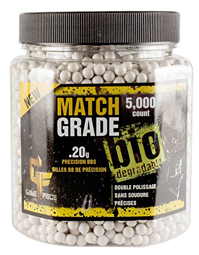 Game Face 20GBW5J 5000 Count Match Grade White Airsoft BBS, 0.20gm