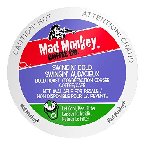 Mad Monkey Single Serve Coffee Capsules, Swingin Bold, 100% Arabica Bold Roast, Compatible with Keurig K-Cup Brewers, 48 Count