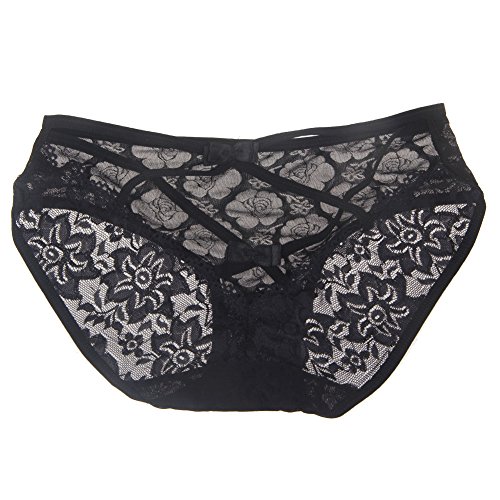 ECOSCO Lady Black Floral Full Lace Back Cut Brief Underwear Panty FWU031
