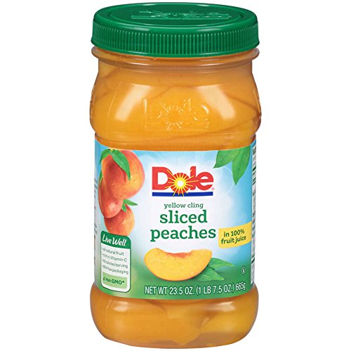 DOLE Sliced Yellow Cling Peaches in 100% Fruit Juice, 23.5 Ounce Jar (Pack of 8)
