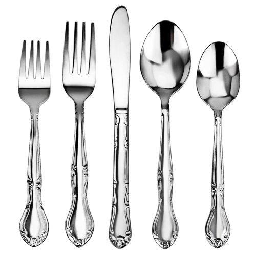New Star Foodservice 58857 Rose Pattern, Stainless Steel, 60-Piece Flatware Set