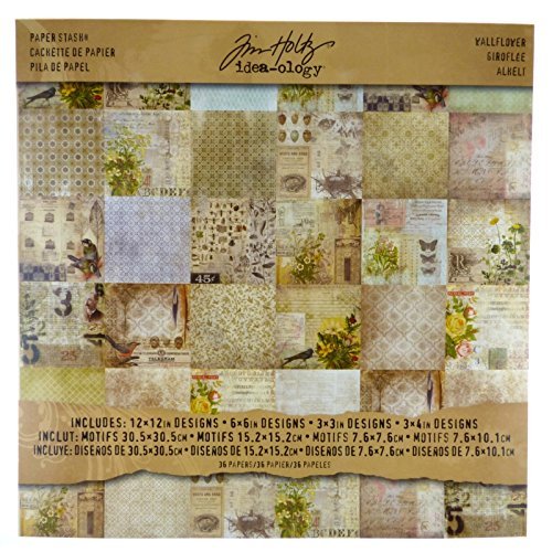 Wallflower Paper Stash by Tim Holtz Idea-ology, 36 Sheets, Double-Sided Cardstock, Various Sizes, Multicolored, TH93110