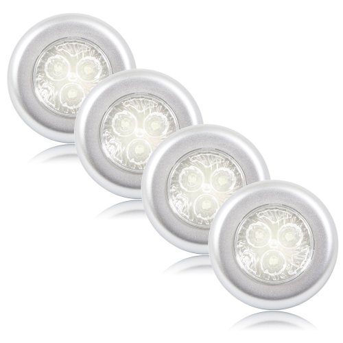 Maxxima LED Battery Operated Stick On Tap Light, Silver, 4 Pack