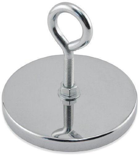Master Magnetics RB100EB Magnetic Hook, Round Base Magnet Fastener with Eyebolt Chrome Plate, 4.90" Diameter, 4.187" Total Height, 200 Pounds, Silver