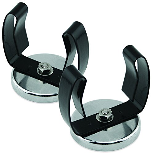 Master Magnetics RB50BVCCX2 Magnetic Hook, Round Base Magnet Fastener with Steel Clip Chrome Plate, 2.04" Diameter, 2.20" Total Height, 35 Pounds, Silver (Pack of 2)