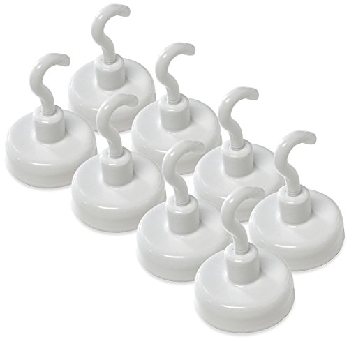 8-Pack White Enamel Compact Strong Magnetic Hook Set, 1" Diameter, 1.5” Length (MHHH9X8)