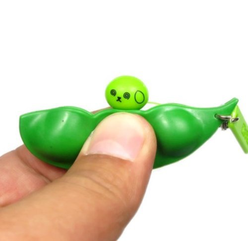 Extrusion Squeeze-a-Bean Soybean Stress Relieving Playful Charms Keychain for Mobile Keys (Random Color)