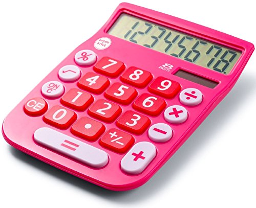 Office+Style 8 Digit Dual Powered Desktop Calculator, LCD Display, Pink - A2DESKTOPPINK