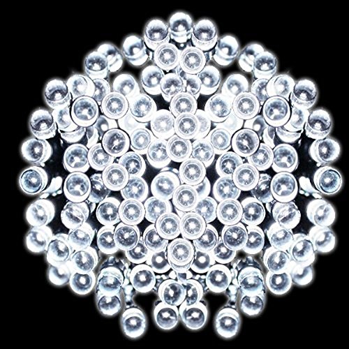 White 17m 55ft 100 LED Solar Powered String Light Holiday Fairy Lights for Outdoor Gardens, Homes, Christmas, Partys, Weddings, Xmas, Easter, Festivals (White)