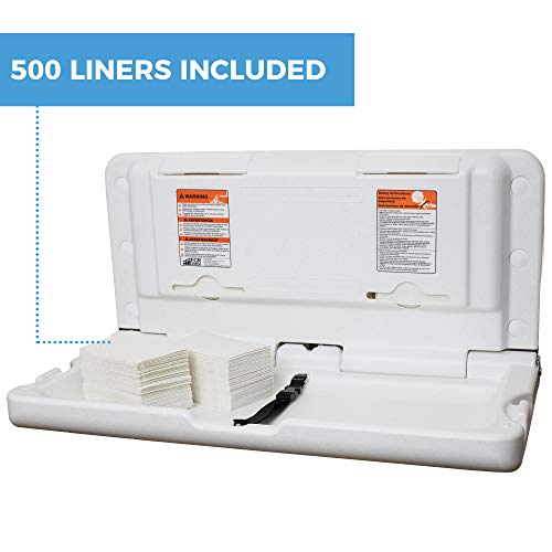 ECR4Kids Wall-Mounted Baby Changing Station with 500 Disposable Liners, Horizontal Fold-Down Diaper Change Table with Safety Straps for Commercial Bathrooms, ADA and ANSI Compliant, White Granite