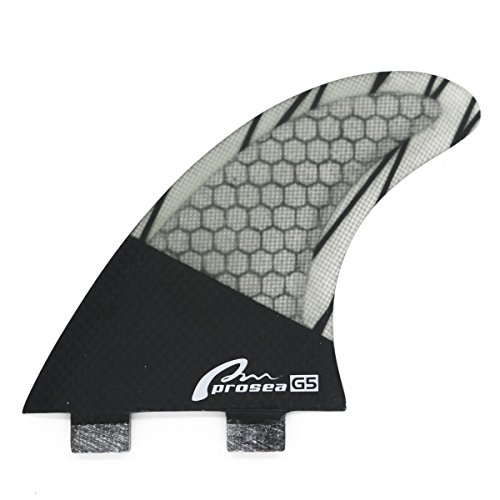 Prosea Surfing Fins FCS Base Carbon G5 Size Grey Surfboard Thrusters Made of Cabon Fiberglass and Honeycomb with 1 Key& 6 Scrws