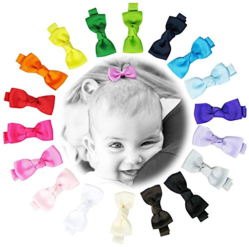 HipGirl 16pc 2" Small Bow Tie Hair Bow Clips, Printed Ribbon