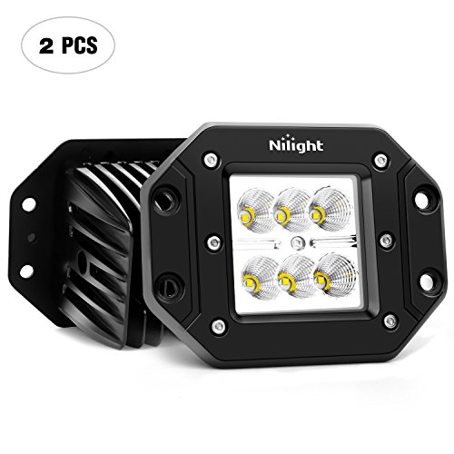 Nilight 2PCS 18W Flood LED Work Light Driving Lights Led Light Bar Off Road Led Lights Flush Mount for Jeep Truck Tacoma Bumper ATV UTV,2 Years Warranty