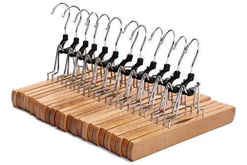 JS HANGER Skirt Hangers Non-Slip Wooden Collection Slack hangers, Walnut Finish, 10-Pack