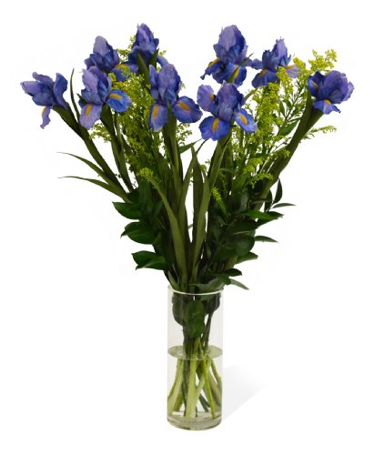 KaBloom New Baby Boy Bouquet of Blue Iris and White Aster - With Vase
