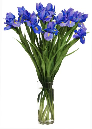 KaBloom Bouquet of Fresh Blue Irises (20 Stems) with Vase