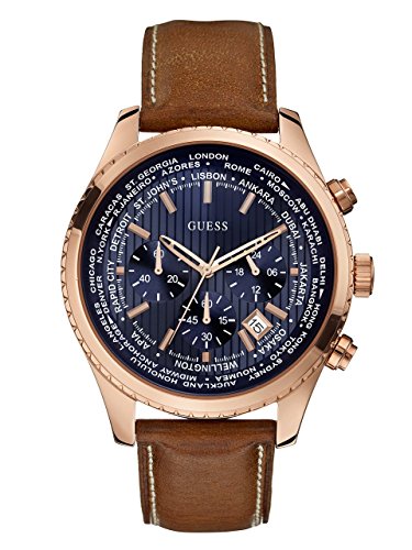 GUESS Men's Stainless Steel Casual Leather Watch, Color: Rose Gold-Tone/Brown (Model: U0500G1)