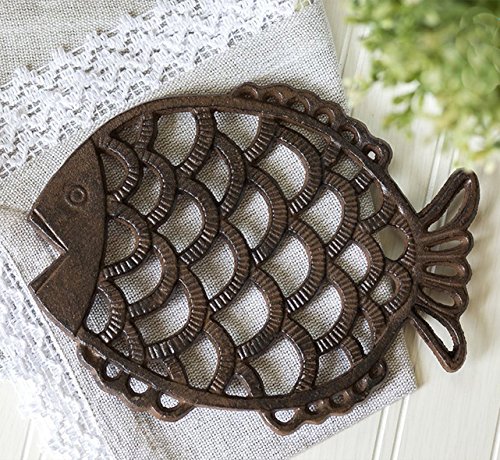 "Fish" Decorative Cast Iron Trivet For Kitchen Or Dining Table | Vintage Design | 8X6" | With Rubber Pegs/Feet - Recycled Metal by Comfify