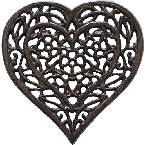Cast Iron Heart Trivet - Decorative Cast Iron Trivet For Kitchen Or Dining Table - Vintage, Rusted Design - 6.75X6.5" - With Rubber Pegs/Feet - Recycled Metal - Rust Brown Color - by Comfify