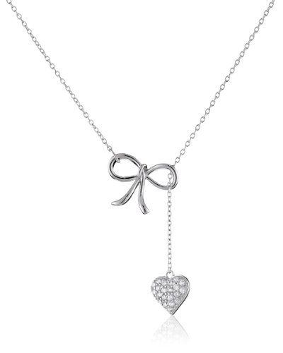 Sterling Silver Cubic Zirconia Bow and Pave Heart Lariat Necklace, 16.5" + 2" Extender