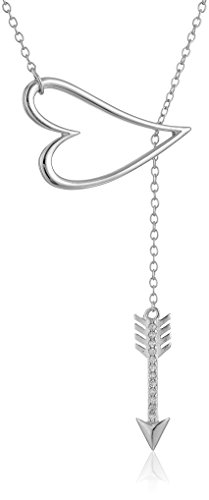 Sterling Silver Cubic Zirconia Arrow and Open Heart Lariat Y-Neck Necklace, 16.5" + 2" Extender