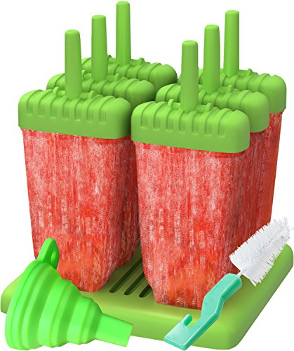 Popsicle Molds, Ozera Set of 6 Ice Pop Molds Maker, Popsicle Trays - With Silicone Funnel & Cleaning Brush - Assorted Colors (Light Green)