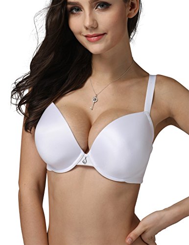 The Rose Lady Women's Plus Size Satin Bra 60729 Underwire Molded Adjustable Bra, White, 34DDD