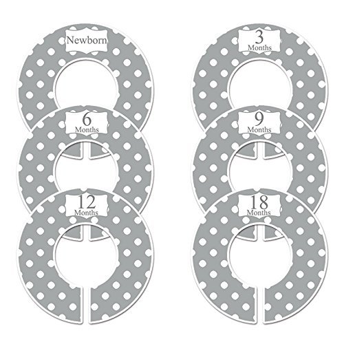 C21 Gray Polka Dots Baby Closet Size Dividers Set of 6 Fits 1.25inch Rod