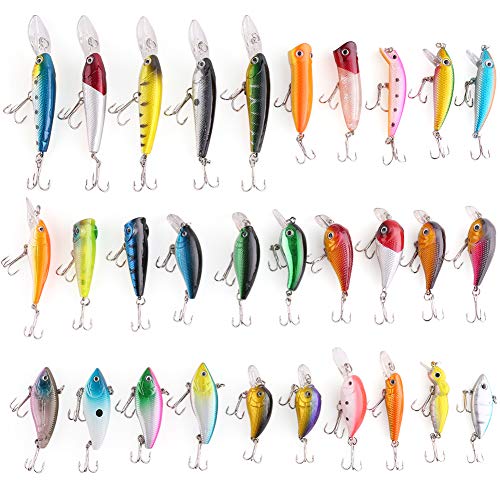 LotFancy 30 PCS Fishing Lures Crankbaits with Treble Hook Topwater Baits, Bass Minnow Popper Walleye Baits, Length from 1.57 to 3.66 Inches (Assorted)