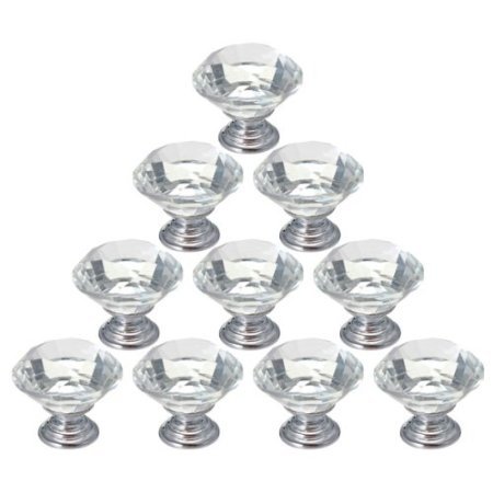 10pcs 30mm Glass Clear Cabinet Knob Drawer Pull Handle Kitchen Door Wardrobe Hardware Used for Cabinet, Drawer, Chest, Bin, Dresser, Cupboard, Etc
