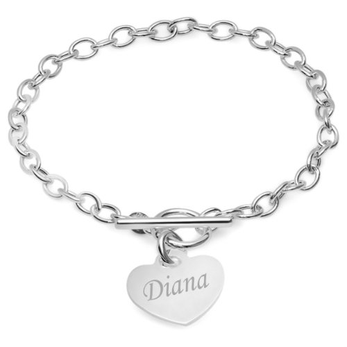 Forevergifts Personalized Sterling Silver Heart Charm Bracelet - Free Engraving