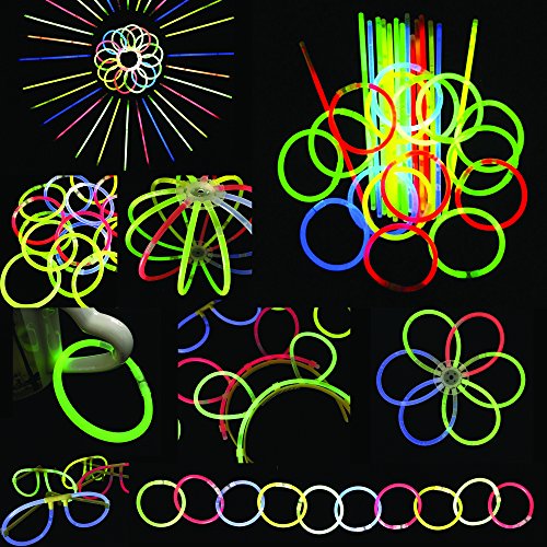 200 8" glow stick bracelets,mixed colors,200bracelet necklace connectors,5 pairs of glow glasses connectors,1 glow ball/flower kit,5 hair clip barrettes