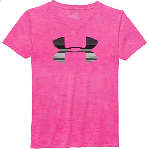 Under Armour Kids Girls Novelty Logo S/S V-Neck Top (Big Kids), Chaos/Black, LG (14-16