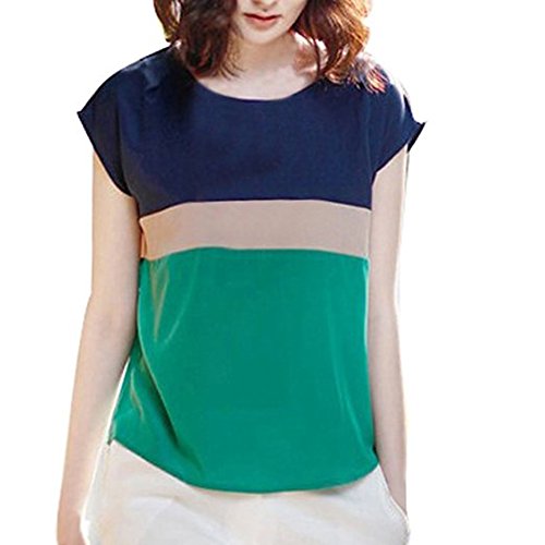 Vobaga Women's Loose Casual Stripe Color Collision T-Shirt Tops Blouse Green L