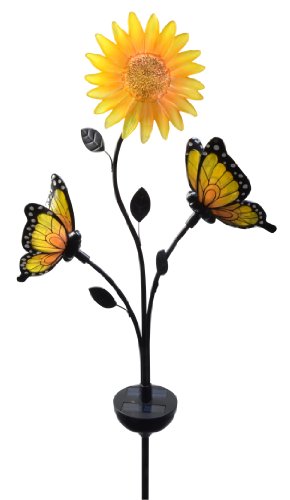Moonrays 92537 Solar-Powered Butterfly & Sunflower Garden White LED Stake Light
